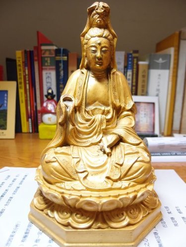 ⑦念完經回向之後,合上經書,面對聖像,默然返觀自心,心中空明無染,湛然寂淨,保任此止觀離意之定靜狀態,靜坐1~3分鐘,然後才起座結束;